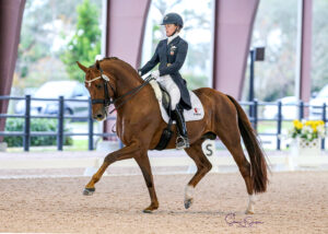 Performance – In 2015 with Olympic medalist-Lisa Wilcox, Gallant Reflection was the USEF Six-Year Old NATIONAL CHAMPION, scoring 8.8 for his outstanding trot. As a seven-year old he placed in the Top 6 at the USEF Developing Prix St. Georges National Championships & finished in the Top 20 for USDF Horse of the Year standings for both Prix St. Georges & Intermediate I. In 2016, he finished 1st in Developing PSG in Palm Beach & 5th at the USEF Developing Horse National Championships. In 2018, Gallant Reflection debuted at Intermediate II & Developing Grand Prix with scores in the 70s, he ranked in the Top 10 for the USDF Horse of the Year standings for Intermediate II.